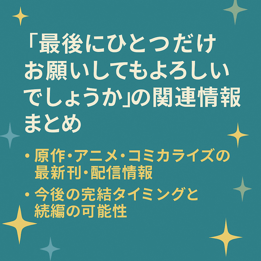 結論として、『最後にひとつだけお願いしてもよろしいでしょうか』は2026年に本編完結を迎える見込みであり、同時に新たなシリーズ展開が始まる可能性も大いにあります。