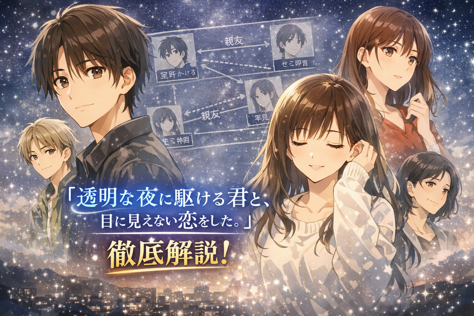 【2026夏アニメ注目作】『透明な夜に駆ける君と、目に見えない恋をした。』相関図・キャラ関係まとめ|繊細な心のつながりを読み解く
