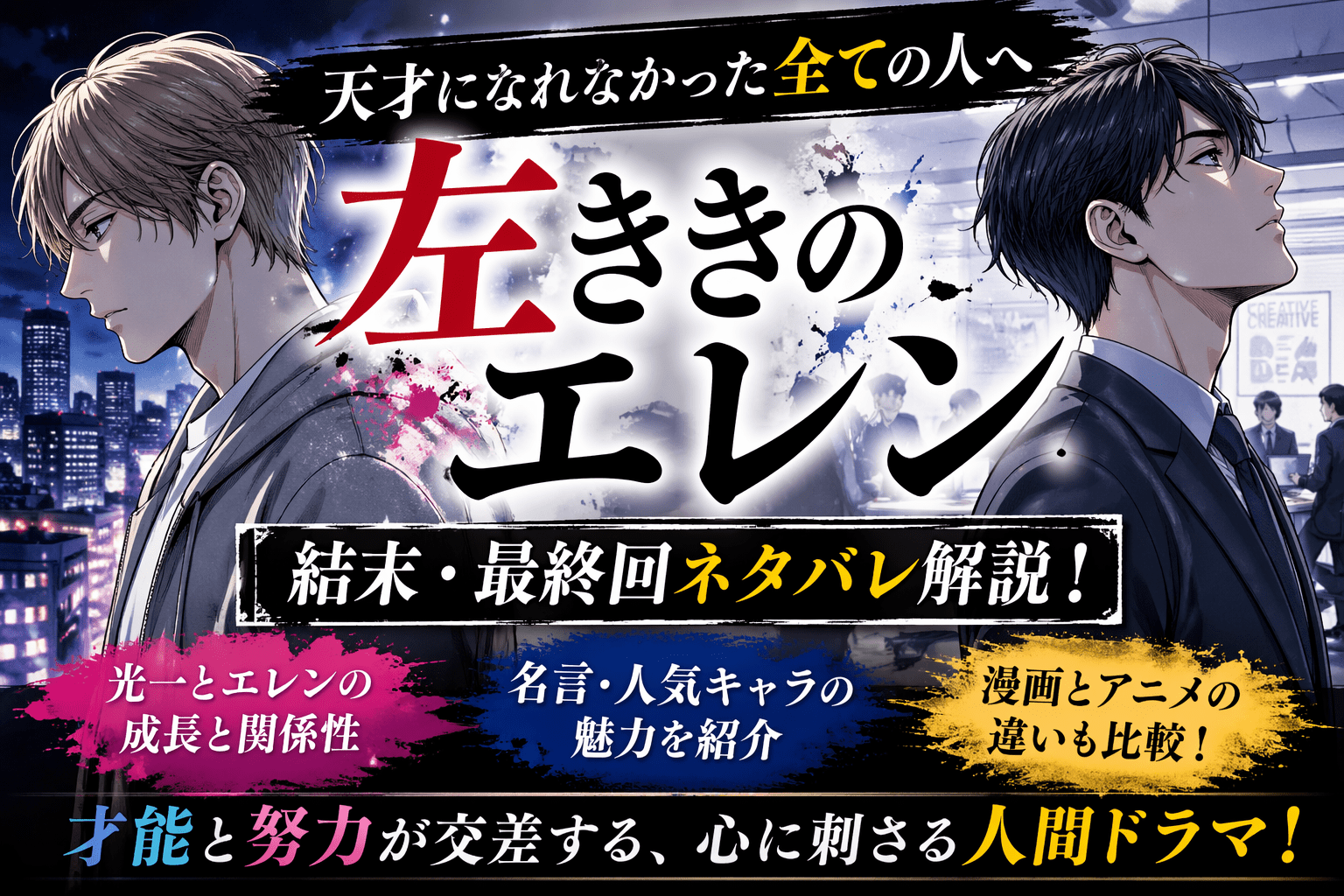 左ききのエレンは「天才と凡人の青春物語」であり、「社会で生きる大人たちの群像劇」でもあります。